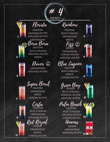 Moderni ir efektinga renginių atrakcija „Mixon“ turi alkoholinių ir nealkoholinių gėrimų meniu, todėl puikiai tinka vestuvėms, gimtadieniams, krikštynoms, įmonių renginiams, mergvakariams ir bernvakariams bei daugeliui kitų renginių. Paruoškite skanius gėrimus per 15 sekundžių. Patiekiamų kokteilių asortimentas labai platus. Aštuoniuose patraukliuose meniu rasite 80 unikalių gėrimų.